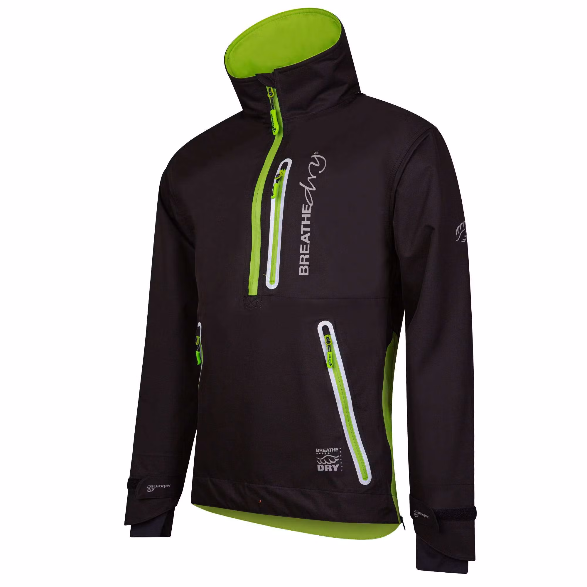 Ärmarna är av generös längd och har inre mjuka muddar med tumöglor. Ytterligare funktioner inkluderar krok- och öglefästen för att hålla ärmsluten vattentäta.